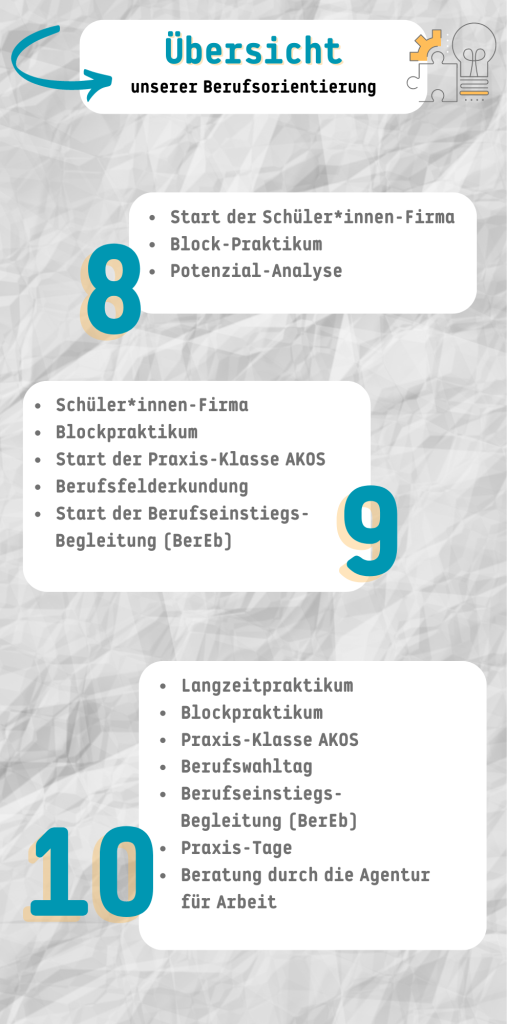 Hier sehen sie alle wichtigen Elemente der Berufsorientierung der Oberstufe: